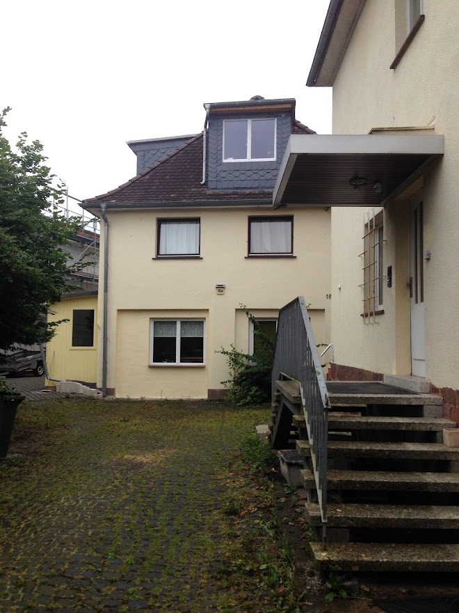 A mí llegada me esperaba el cuarto de una chica alemana que se fue de vacaciones y me lo dejó por los dos meses que estaría ahí. Vivía bajo el techo y me tomó tiempo acostumbrarme a que mi cabeza golpeara con el techo cuando me levantaba de la cama. Una cosa con la que batallé fue la ventana. El sistema de abrir y cerrar es distinto, a parte que esta abre para adentro o se puede dejar inclinada. Me tocó compartir el departamento con un argentino que también iba a los cursos y nos llevamos muy bien, sobre todo a la hora de tomar el mate con sus otros connacionales. En las fotos pueden ver la vista que tenía desde mi ventana y en la tercera cómo era desde afuera.