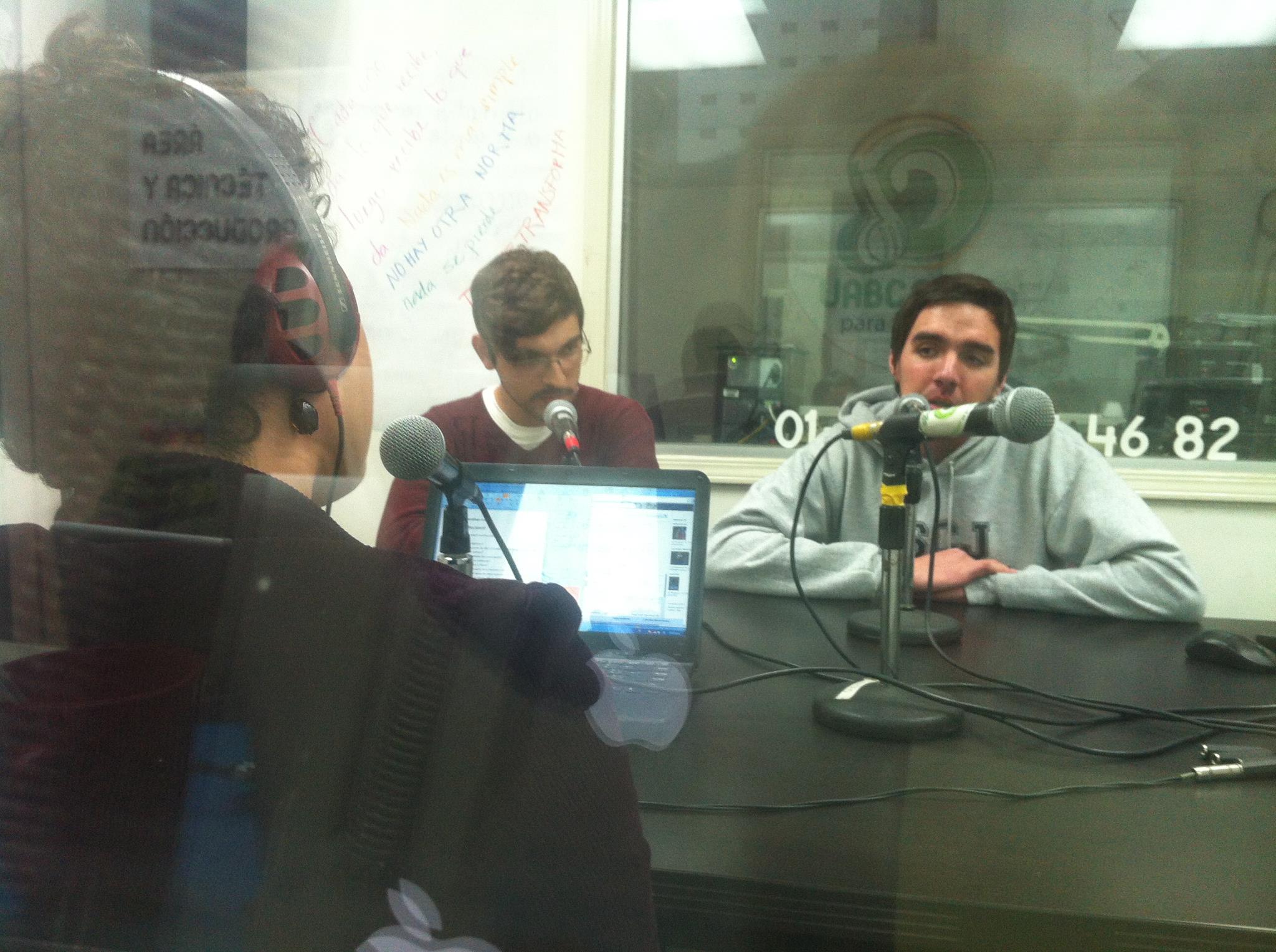 No recuerdo muy bien cómo fue que fuimos contactados por la radio de la Universidad donde estudié pero terminamos asistiendo a uno de sus programas para ser entrevistados sobre el grupo de ciencias en el que ya teníamos un par de años participando; la Sociedad Científica Juvenil. Aquí me encuentro con uno de mis amigos que también fue miembro refundador de esta asociación. Lo conozco desde el primer semestre de prepa, desde que tenía catorce años de hecho, y resultó ser un estudiante muy aplicado en las materias que llevábamos. Fue curioso que durante el primer año que cursamos juntos la preparatoria nos unimos para hacer un super grupo de estudio en conjunto con otros dos amigos que también eran muy chambeadores. Esto significaba que cada que se necesitaba hacer un equipo de trabajo en el salón nos juntábamos automáticamente para realizar el trabajo. Sí, éramos el grupo de nerdos con las mejores calificaciones en ese entonces. Pero bueno, esa es una historia para otro rato. Volviendo al tema, la verdad es que no recuerdo exactamente de lo que hablamos aquí pues ya han pasado casi nueve años de este evento pero estoy seguro de que charlamos sobre la trayectoria de la SCJ, nuestra dinámica como grupo y sobre los proyectos que teníamos en esas fechas. Pueden ver también que hasta ya contábamos con una sudadera con la sigla del colectivo y la portaba orgullosamente aunque en realidad no tenía mucho sentido pues era una entrevista en la radio. En fin, fue una experiencia interesante que nos ayudó a divulgar un poco a la SCJ y agarrar práctica para futuros encuentros con los medios de comunicación. De hecho, un par de años antes ya habíamos estado en la radio como asociación formada pero esta también es una historia para otro post.