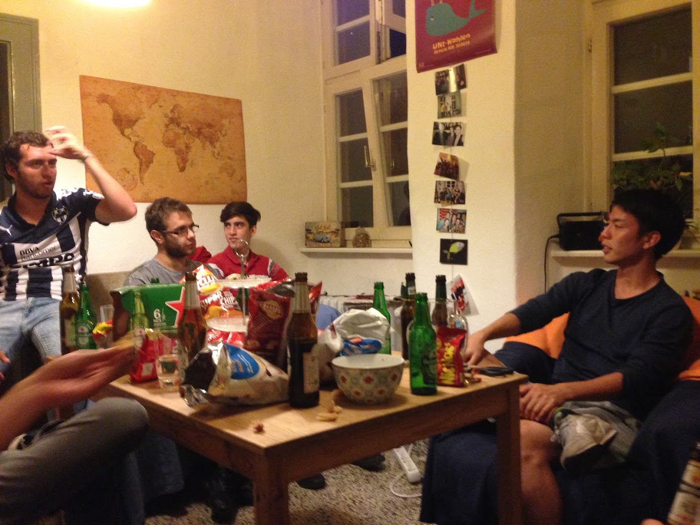 Imagínense que llegan a un país del otro lado del mundo en el que nunca han estado, no conocen a nadie y te ponen en un cuarto con gente en la misma situación que tú pero de otras nacionalidades ¿Qué podría pasar? Esta era la situación a la que me enfrentaba durante mis primeras semanas en Marburg. Fue en estos días donde practiqué el inglés que aprendí desde que era un niño pero que nunca utilicé en la vida real. Era eso o hablar alemán, solo que los que estaban en los primeros niveles del curso no lo tenían dominado, por lo que era hablar en inglés o no conocer gente. Otra cosa curiosa es que había mucho latino en la escuela de idiomas, sobre todo mexicanos. La verdad es que prefería pasar mi tiempo con gente de otros lados para conocer sus culturas y mejorar el idioma comodín ya que mi habilidad para hablarlo era penoso. Pero bueno, con los días de práctica esto quedó atrás y me sentía más confiado de mi segunda lengua. Como les decía, estar en un cuarto cotorreando con internacionales es una experiencia muy interesante y sobre todo enriquecedora. Puede que sepas algún dato curioso de cierto país pero no podrás confirmarlo hasta que tengas a un nacional frente a ti y se lo preguntes. Lo que siempre sucede es que alguien se sabe alguna palabra o frase en el idioma del otro y esto siempre sorprende a los demás. De esto surgen historias de cómo es que se aprendió esos enunciados y que naturalmente llevan la plática a otros temas culturales. Fue en estas tardes donde aprendí mucho sobre las costumbres de tierras lejanas en las que jamás he puesto un pie pero ahora siento gran interés de visitar. Aquí también me eduqué a cómo tratar a gente con distintos backgrounds culturales; no siempre es buena idea abrir con un chiste o comentario sobre un estereotipo que conozcas de su país. Esto lo aprendí rápido a mi llegada a Alemania cuando salí a pasear con una chica y comencé a platicarle sobre lo que sabía de su nación. El problema fue que lo que a mí me causaba gracia a ella no le parecía nada chistoso. Supongo que después de este encuentro me tachó de payasito. En fin, no dejen pasar la oportunidad de asistir a este tipo de reuniones donde habrá gente de otros lados. Al final de la noche se van a llevar algo de conocimiento internacional que les podrá servir para su crecimiento personal. Aquí les dejo una foto de uno de mis primeros cotorreos internacionales. Hay dos mexicanos, un argentino y un japonés, ¿Pueden identificarlos?