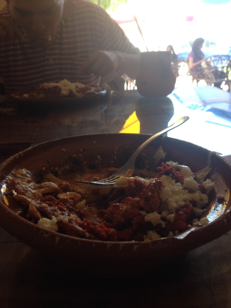 Ahora toca hablar un poco de otro lugar en el que pasé bastante tiempo durante mi intercambio: La Chilaquería. Como su nombre lo indica, este pequeño restaurante se dedicaba a preparar uno de los mejores chilaquiles que he probado hasta el día de hoy en lo que me ha tocado comer en México. Se encontraba a unos minutos caminando de donde me hospedaba y a unos cuantos pasos de Don Amable en la mera zona de fonditas donde siempre estaba lleno de estudiantes de La Salle y unos cuantos de la Universidad de Guanajuato. Yo tenía que caminar un poco más porque el campus se encuentra en una zona residencial medio fancy mientras que esta uni que les menciono está frente a los restaurantes. Pero bueno, este lugar me lo recomendaron unos colegas que conocí allá en León y me agradó bastante como para ir mínimo una vez por semana. También aproveché para invitar a otra gente que iba conociendo o que iban de visita, como el dueño de El Cementerio que estuvo un ratito de visita en la ciudad. No puedo hablar mucho del sabor o de cómo los preparaban porque eso depende de cada quien pero todos concordábamos en que eran únicos y que estaban buenos. Me imagino que tenía mucho que ver con que había estado acostumbrado toda la vida a comer cierto estilo de chilaquiles norteños que te sirven en los restaurentes acá por lo que al probar la variante del centro del país quedé sorprendido. Lo mismo pasó con otros platillos tradicionales mexicanos; cada región le da su toque. En fin, me parece que este local le cambiaron el nombre y ahora cuentan con más variedad en su menú conservando su platillo que los hizo famosos. Me gustaría encontrar un local similar por acá en mi ciudad pero no he encontrado todavía; los hacen igual en todos lados. Pero bueno, por lo menos me tocó comer en este lindo lugar. Un dato curioso es que casi siempre nos atendía un pirata que pueden ver en la última foto. Ya verán por qué.