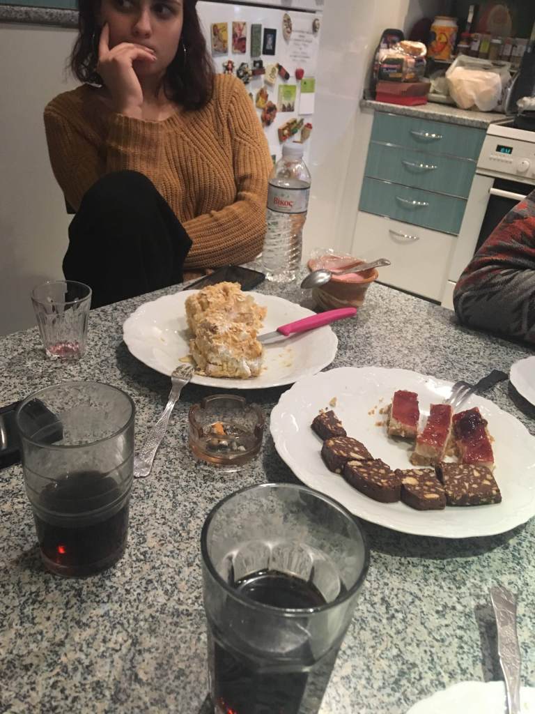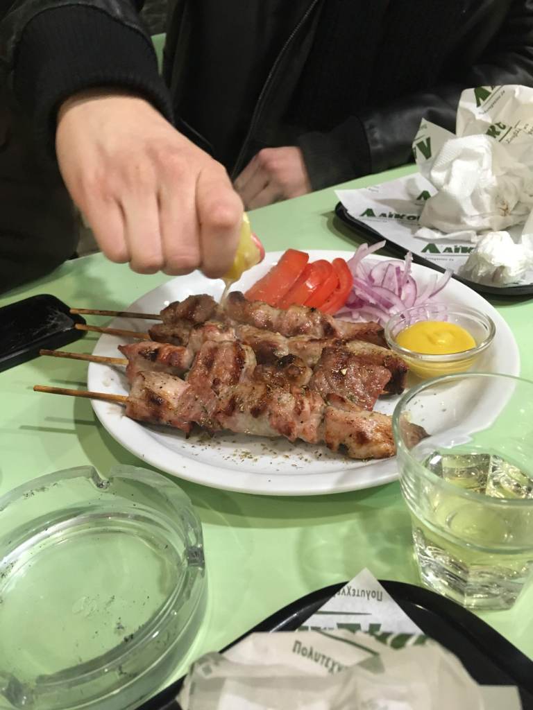 Resulta que un par de los Buben son griegos y uno de ellos vive al norte del país. Este compa me invitó a visitar su ciudad y aproveché para extenderle la invitación a otro miembro del club de físicos Bonneros. Fue a inicios del 2019, justo después del año nuevo, que aterrizamos en el aeropuerto de Thessaloniki para pasar tres días en esta región costera de Grecia. Nos hospedamos en la casa del que nos invitó, aprovechando que su hermano no estaba nos quedamos en su cuarto esas noches. El plan para el fin de semana era simple: conocer la comida griega, sus calles, gente y cultura. Comenzamos el tour en un café del centro de la ciudad, no muy lejos de la casa de este amigo. Resulta que ir por un frapé y fumarse un cigarro es algo común para los griegos (a pesar de que está prohibido, se sigue fumando dentro de los establecimientos). Después de esto, si no mal recuerdo, fuimos por a probar el tradicional Gyros que es como una torta con carne de puerco y pan pita. Esto es más o menos el equivalente a los tacos para nosotros los mexicanos; había que probarlo sí o sí durante nuestra estancia. Para cerrar la noche fuimos a un bar por chelas y comida en compañía de otros colegas griegos de nuestro host. Ahí probamos cerveza local y otros platillos tradicionales de los cuales no recuerdo el nombre, pero muy buenos sin lugar a duda. Uno de los highlights para mí fue la comida que preparó la mamá de mi pana. Un platillo que llamó mi atención, aparte de otros tantos que llenaron la mesa, fue la musaka; no esperaba que la combinación de sus ingredientes pudiesen dar tan buen resultado.