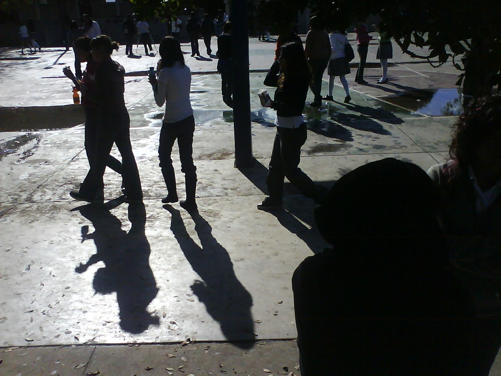 Hace unas semanas me volví a encontrar con esta imagen, que es mientras estaba en un receso entre clases cuando cursaba la prepa. Ya van a ser catorce años de esta foto y no sé por qué razón la tomé. Es un instante congelado de uno de los lugares favoritos del campus; la explanada. Resulta que hay otros tres posts (Soda infinita, Inercia y Johnny famoso) que he escrito donde menciono este lugar, pero nunca había mostrado una imagen. En realidad, no tengo un buen ejemplar de esta icónica locación, solo esta mala foto que capturé en un momento random. Con el tiempo me di cuenta de que aquí sucedieron muchas cosas interesantes que me marcaron hasta el día de hoy. Ya he escrito sobre esto en los posts que cito aquí, pero ahora solamente quería mostrarles cómo es que se mira este lugar. La cosa es que el grupo de amigos no se juntaba exactamente desde la perspectiva que da la imagen, hay que irse a la esquina de arriba a la izquierda para encontrar en el otoño del 2008 a una bolita de emos y metaleros conviviendo bajo un árbol. Ahí nos juntamos casi a diario durante los dos semestres que nos tocó tomar clases en ese lado de la escuela. Toda esta interacción se daba durante una hora al día, que es cuando los del turno matutino salíamos y los del vespertino entraban. Después de que terminó el primer año de cursos, distintos subgrupos surgieron (por lo general por el salón que les tocó) que raras veces llegaron a interactuar de nuevo entre ellos, solo que no como antes. Este gran grupo de amigos surgió por una pequeña coincidencia que en su momento no me pasó por la cabeza. La historia va más o menos así: en la primaria tenía un mejor amigo, que se fue a otra secundaria por tres años, por lo que el contacto se perdió casi por completo. Al entrar a la prepa vi que él también estaba ahí, por lo que fue natural volver a juntarme con este cuate. Lo interesante fue que cada quien generó su bolita de amigos en la secu y que se llevó a la prepa también. De esta manera fue que sea inició con el supergrupo; cada quien fue invitando a más gente hasta que ya no había lugar para más. En fin, durante este año de reuniones se generaron muchas memorias, anécdotas y lindos proyectos como el de la banda de covers de la que fui parte. Ahora solo queda rendirle tributo este lugar y mandarle un caluroso saludo a la banda. Ich vermisse euch alle!