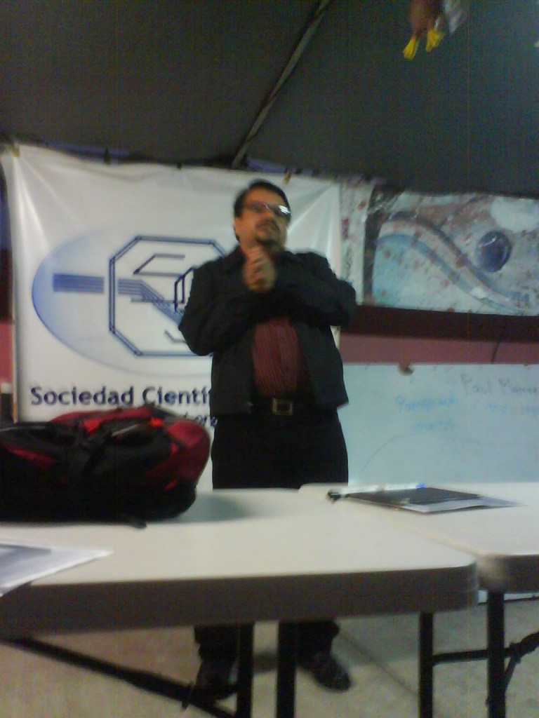 Esta es una foto que tomé hace como once años en el patio de mi casa mientras el Dr. Vázquez impartía una plática a los miembros de la Sociedad Científica Juvenil (SCJ). De hecho, él fue el primer presidente que existió en esta asociación de jóvenes científicos que inició originalmente en los ochenta. Si han seguido los posts de la serie SCJ, sabrán que yo junto con otros compañeros retomamos este grupo en el 2011. Tuve el honor de ser el presidente que dirigió al grupo por los siguientes tres años y de guiar a gente muy capaz durante este tiempo. Todo esto ya se los he platicado, ahora toca hablar un poco de la persona que tuvo la brillante idea de crear esta agrupación. No queda duda que con su liderazgo ha tocado de forma indirecta la vida de cientos de personas que ahora conforman la SCJ.