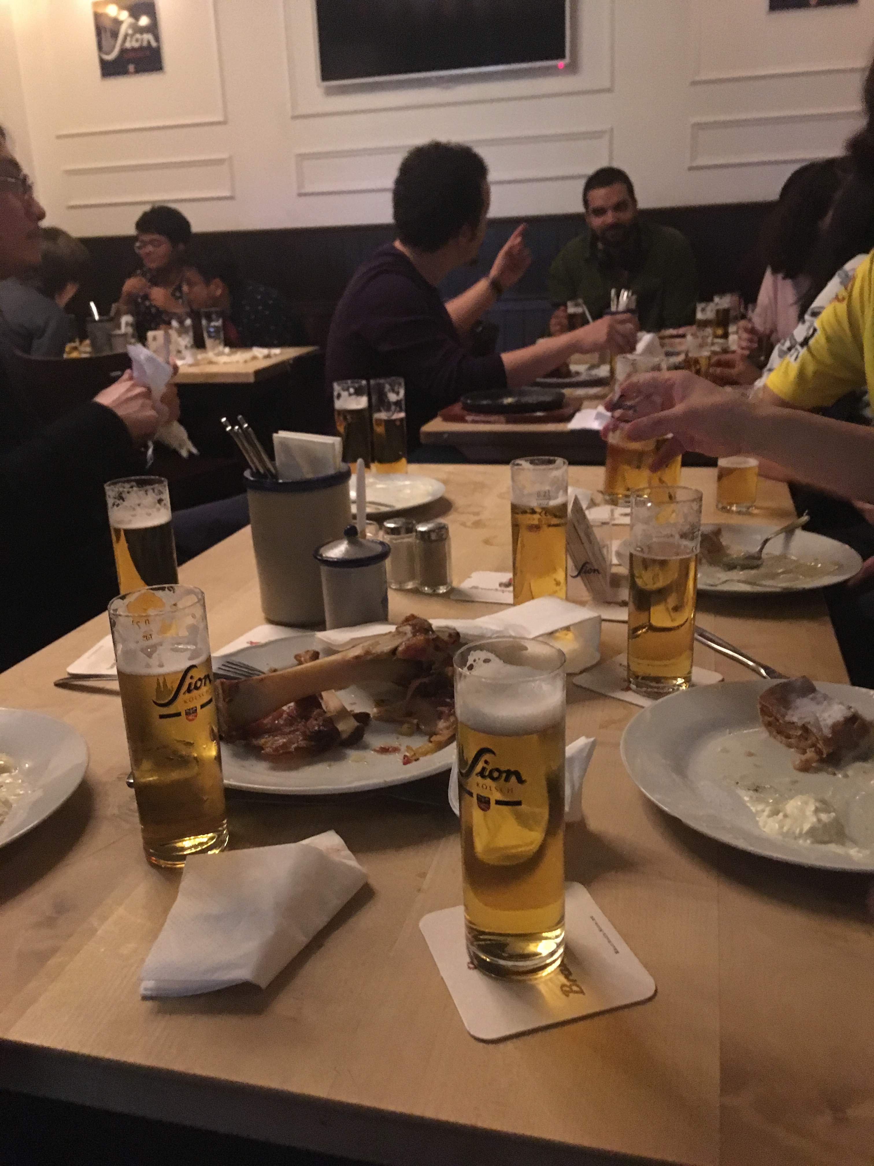 Durante el año había dos eventos que eran muy celebrados por los estudiantes de maestría y doctorado de los institutos de física de la Universidad en Bonn: la cena de los candidatos para la beca del Bonn-Cologne Graduate School (BCGS) y la de bienvenida para los que fueron seleccionados, unos seis meses después. La sede de estas comidas era Bonn o Colonia; una y una. Lo curioso era que no siempre nos llegaban las invitaciones a estos eventos, nos enterábamos porque se corría la voz entre estudiantes y organizadores. En lo personal, una vez que me llegaban las buenas noticias de que se iba a armar una de estas cenas, me encargaba de contarle a la mayoría de mis conocidos (alumnos, claro) para irnos a pistear y comer rico. Estas cenas se hacían, por lo general, en restaurantes “bien” de la ciudad, lo que se le conoce como Brauhaus. Aquí se puede disfrutar, a un precio alto para un estudiante, de cerveza local y platillos tradicionales de la región. A pesar de que estas razones son suficientes para acudir a este lugar a pasar el rato con los amigos, ninguna de estas era nuestra motivación principal. Lo que nos hacía asistir, a pesar de que no estábamos invitados, era que todo era gratis; la Universidad pagaba. Así es, un platillo y todo lo que pudieras tomar. En realidad, todos los estudiantes del BCGS estaban invitados, solo que los organizadores no querían que la mayoría se enterara, por obvias razones.