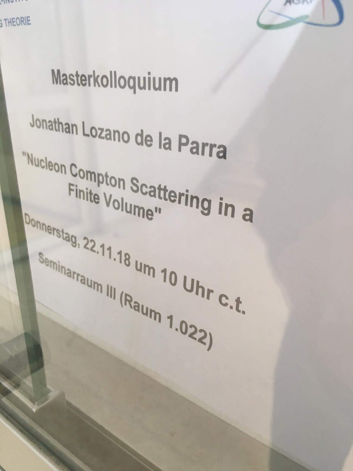 Hace ya unos cuatro años me convertí en Maestro de la Física. Cada que alguien se va a graduar de la maestría o doctorado, se hace una defensa de tesis. Estos eventos se anuncian una o dos semanas antes de que ocurran en los pasillos del instituto. Aquí pueden ver la vez que me tocó a mí. Ese día fue lindo porque la mayoría de mis compañeres del programa de maestría pudieron asistir y regalarme un poco de su tiempo. De hecho, la sala de conferencias se llenó y hasta había gente de pie. Esa noche invité al BKW a los que tenían ganas de pistear entre semana a celebrar que ya por fin había acabado lo que originalmente era mi plan en Alemania.