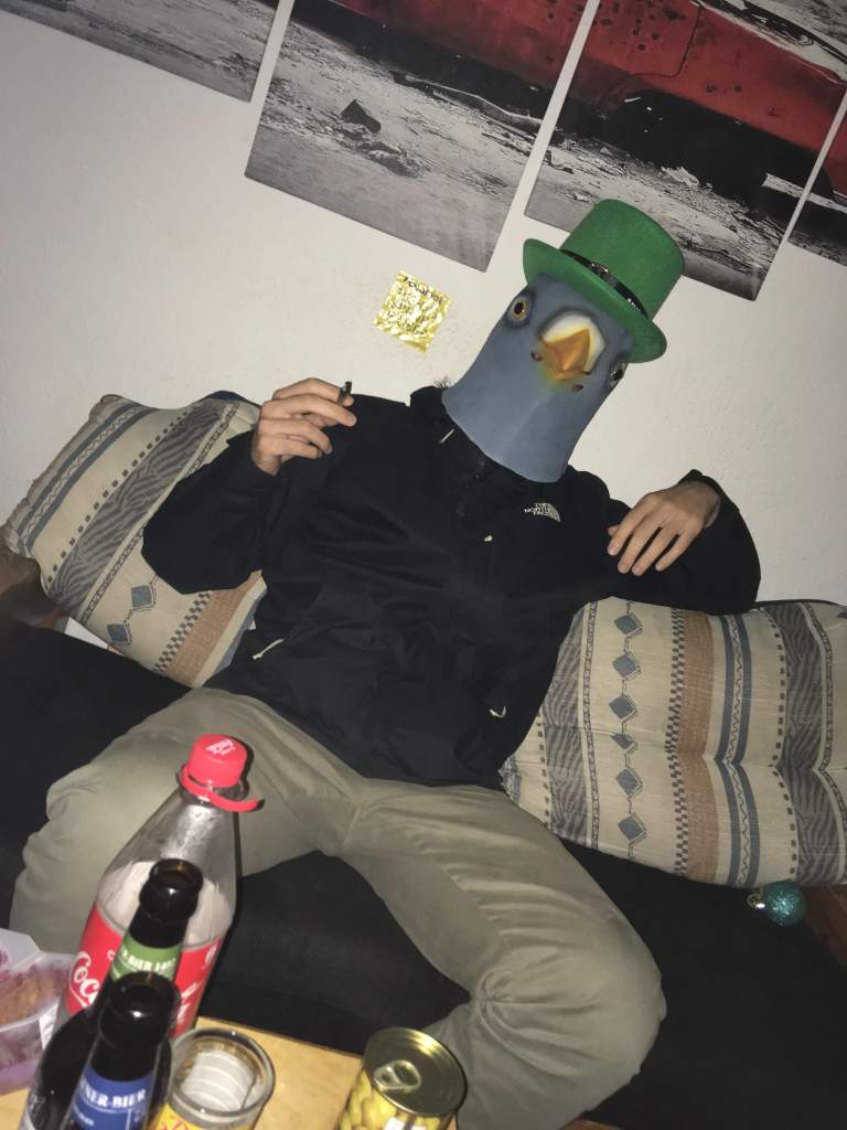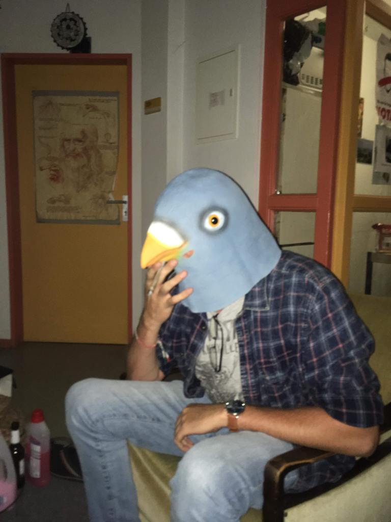 Hace unos años compré una máscara de pájaro y fue una de las mejores inversiones que he hecho. No sé exactamente la razón detrás de esta compra, imagino que fue una de esas tardes que andas buscando cosas por Amazon y te encuentras con algo tan ridículo que tienes que comprarlo. Lo interesante fue que esta máscara fue bien recibida por la comunidad fiestera del Master; cada que se armaba cotorreo esta ave encontraba una cabeza en la cual posarse. Esta compra también motivo a otras personas a conseguirse sus respectivas máscaras, lo que hizo las fiestas aún más entretenidas. Incluso, este artículo le tocó viajar a México, y conocer otros rostros durante una de mis visitas; igual fue un éxito. Tristemente, durante un par de años estuvo perdida, justo después de llevármela a un festival de música. En realidad las fiestas se acabaron, por la pandemia (ya vendrán los posts sobre el 2020 en unas semanas más). Fue cuando regresé a mi país que la encontré de nuevo; estaba en una silla de acampar. En fin, tenía ganas de compartirles esto porque ya apareció y seguirá apareciendo en muchas fotos que publicaré en el futuro, solo para que sepan qué onda con esta Maske.
