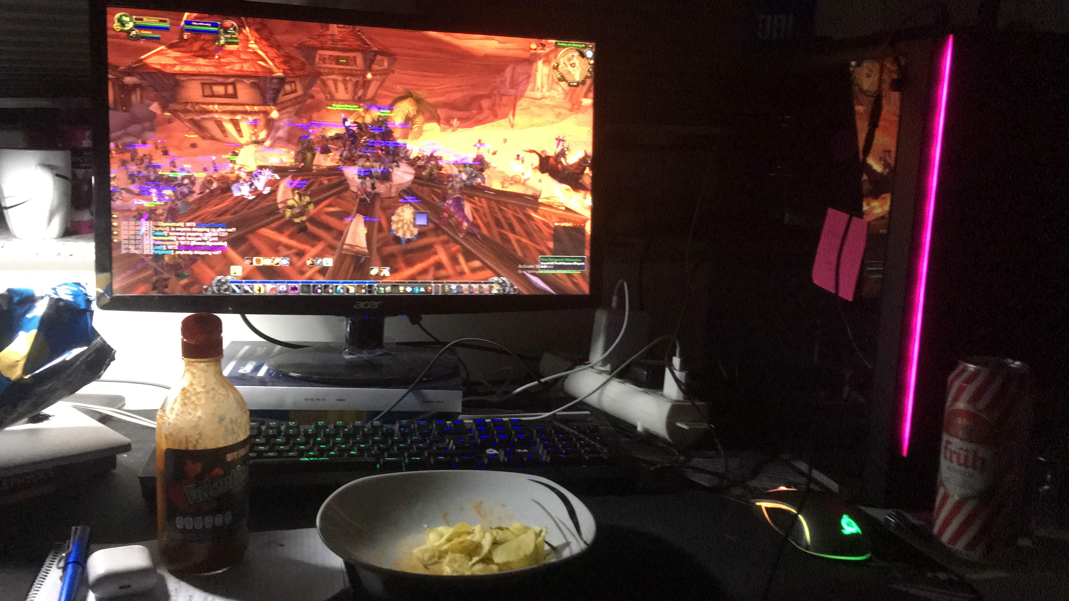 Buena parte del año estuvimos encerrados en Alemania, por lo que había que buscar una buena forma de distraerse (aparte de trabajar). Por fortuna, contaba con una computadora de escritorio que había comprado medio año antes, y dio la casualidad que sacaron un juego que en mi adolescencia jugué bastante. Para no estar más solo de lo que ya estaba, convencí a mi hermano y vecino de que igual se unieran para pasar el rato. El único problema era la diferencia de horario; 9 horas. Lo anterior dificultaba poder pasar el rato con ellos, pero tampoco era imposible. Solo había que despertar a las 7 am y jugar un par de horas con ellos. Esta imagen captura uno de estos momentos, solo que me consentí un poco con unas papitas y cheve. Supongo que era fin de semana y seguramente mi roomie andaba en la sala pisteando también.