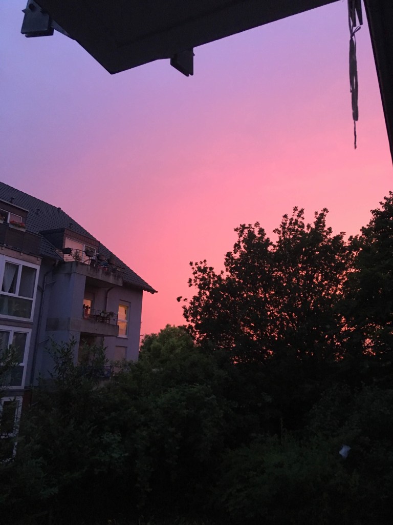 Una tarde de verano en Bonn. Aún no entiendo por qué estaba tan rosado el cielo. Esta foto la tomé desde mi cuarto en el BKW; tenía una vista dos tres privilegiada.
