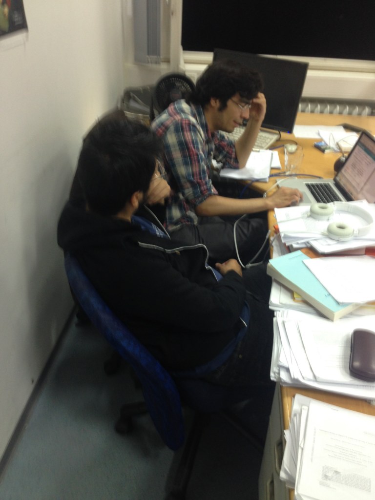 Estos son los compas que me recibieron cuando llegué a Alemania. Los dos graduados de mi misma Universidad y, años después, de la misma institución en Bonn. En esta foto, el dueño del cementerio estaba a pocas semanas de terminar su tesis de maestría. En esas fechas me tocó visitar la ciudad porque andaba en lo de las inscripciones y el papeleo de siempre. Fue visita porque en esos meses me encontraba haciendo el curso de idiomas en Marburg, pasando las mejores semanas de mi vida hasta entonces (quizá hasta hoy). El que está en la laptop pasó también a terminar su doctorado en física mientras que el otro le siguió por la línea de computación, pero de cualquier forma todos físicos.
