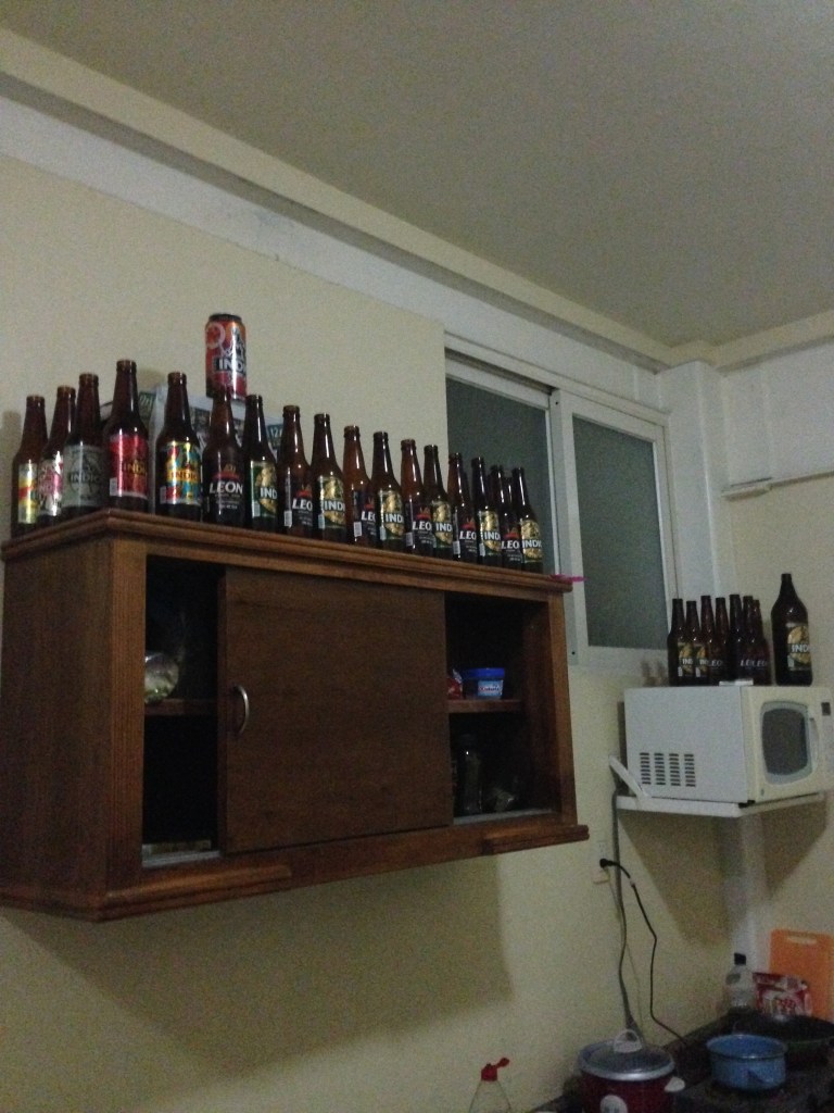 Esta era mi pequeña cocina cuando estaba de intercambio. Resaltan las botellas de cerveza vacías. Como ya les había platicado antes, en esa época me puse a coleccionar los envases de Indio; eran más de 100 etiquetas diferentes. Claro que nunca logré collecionar todas, pero me quedé con una tipo tribalera. Igual se puede apreciar que hay unas León por ahí. Se convirtió en mi cheve favorita ese rato. Es una lástima que ya no pueda encontrarlas tan fácil por estos rumbos.