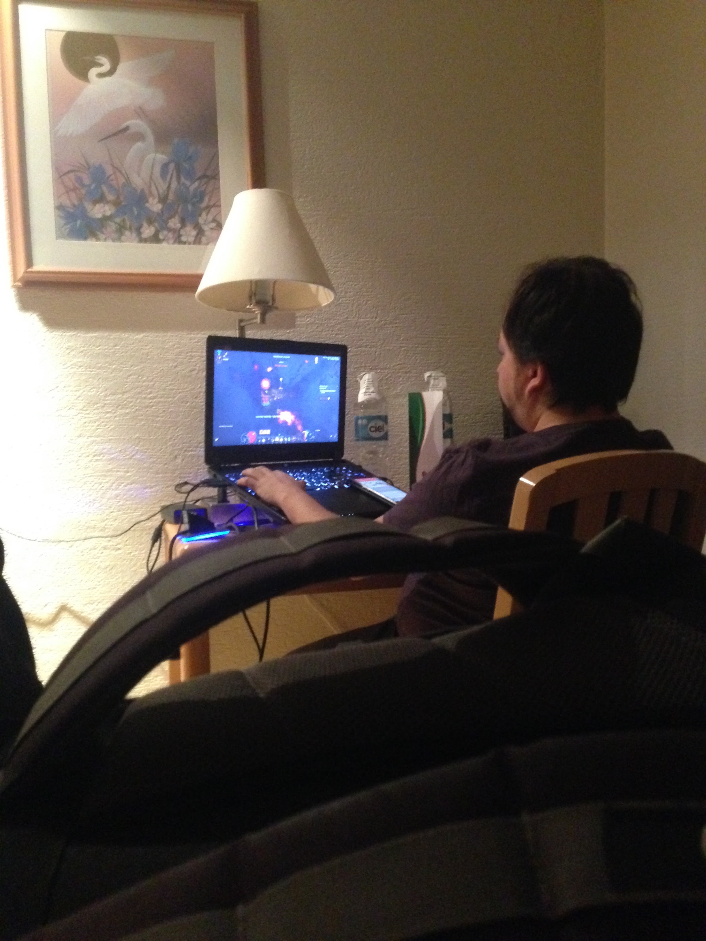 Durante un par de semanas tuve que compartir cuarto de hotel con este tipo; se la pasaba jugando en su compu durante la noche y roncaba horrible. Tuve la mala suerte que, durante una escuela de física en la CDMX, me tocara en el mismo cuarto con él. Resulta que ya lo conocía un poco porque me dio unas clases durante el intercambio en León. En esta imagen pueden ver el setup que tenía sobre la única mesa que teníamos en el cuarto; ni había chance de trabajar porque se agandallaba todo el espacio. Lo bueno fue que al final me quedé una noche solo en el cuarto porque se fue un día antes de terminar la escuela (a la que ni asistía). En fin, malas experiencias compartiendo espacios.