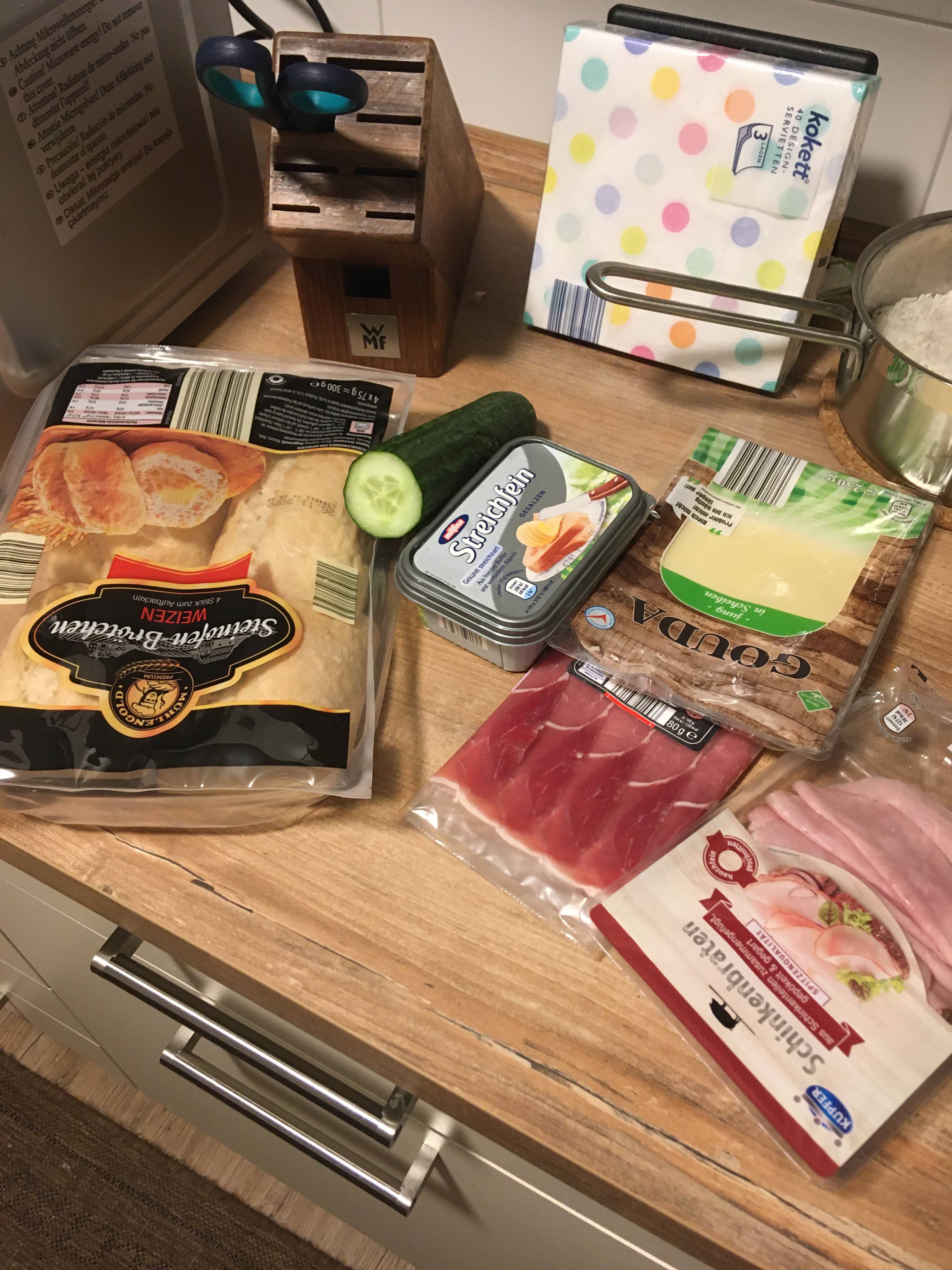Esto era mi desayuno de casi todos los días durante mis últimos años en Alemania. Debo decir que también faltan los huevos, pero no sé por qué los excluí de la foto. Si se preguntan la razón por la que los alemanes son fit, es por esto; se desayunan, por lo general, un pan con queso y jamón, a veces un huevo cocido. Claro que hay variaciones un poco más extremas, como solo agarrar pan y mermelada (mi dieta de Marburg) y no desayunar nada más. Me tomó algo de tiempo acostumbrarme, pero le agarré cariño. Durante mis últimas visitas esto era lo que siempre compraba; de alguna forma lo extrañaba.