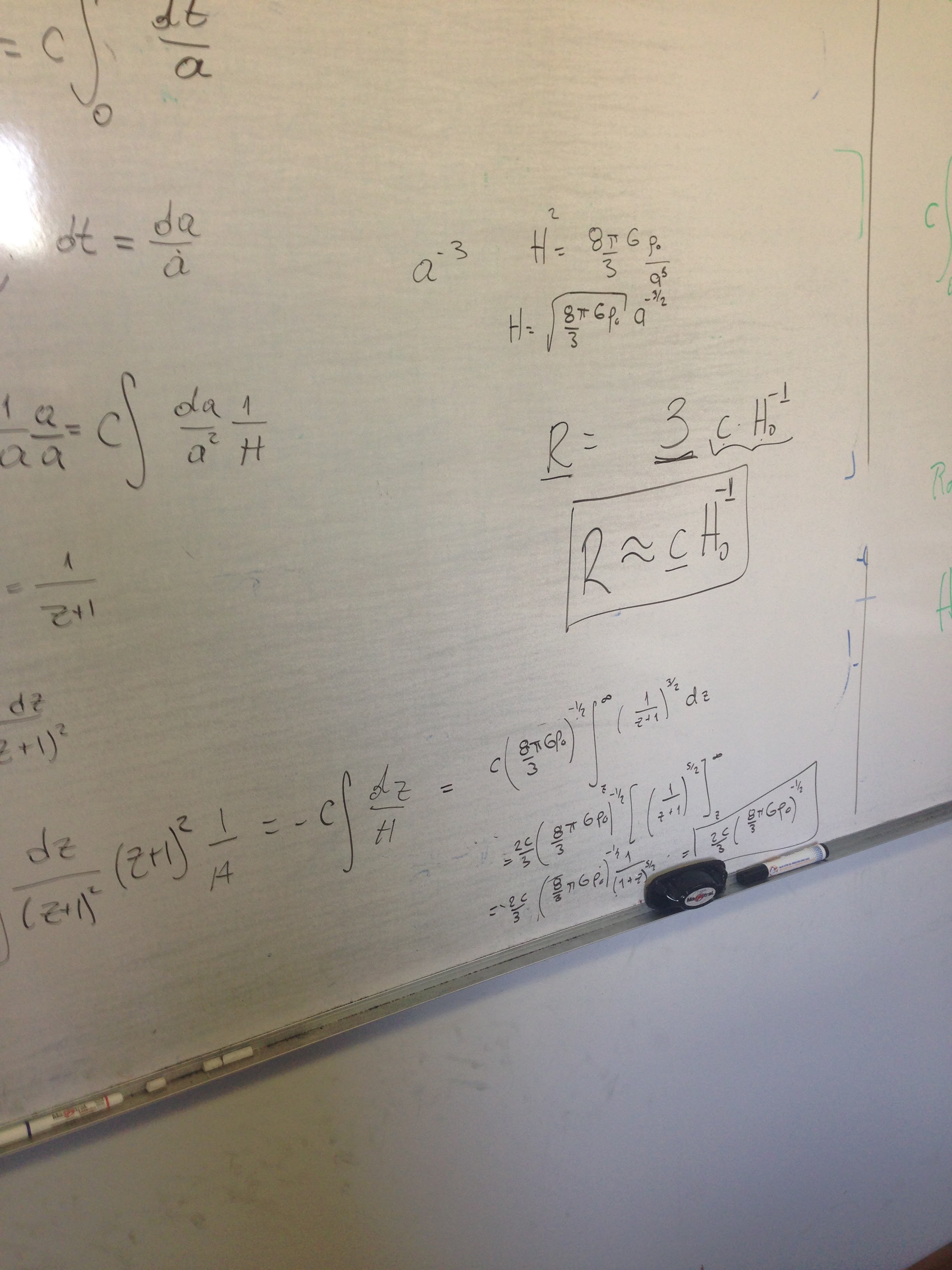 Cuando andaba de intercambio en León me tocó llevar una materia interesante, una que no podía tomar en Ensenada porque no existía. Trataba temas relacionados al estudio del Universo a gran escala (espacial y temporal); inicio, evolución y fin. La materia de cosmología no está dentro del plan de estudios, dado que es un tópico muy especializado, por lo que tuve que salir de la ciudad para aprender algo. Debo mencionar que tenemos un instituto de astronomía en la ciudad, pero nadie se había dado a la tarea de darla (quizá la dieron antes, no estoy seguro). Ahora, después de casi una década, me va a tocar impartirla en mi facultad. Tuve el privilegio de armar la carta descriptiva y seleccionar todos los temas. Ahora que arranca el semestre, me doy cuenta de que fue más popular de lo esperado y no sé qué haré con tanto estudiante, pero será divertido.
