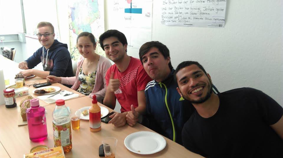 Aquí ando durante uno de los eventos culturales de mis clases de alemán. Si mal no recuerdo, una compañera de Indonesia nos trajo algo de comer, y pues ahí andábamos. Nuestra profesora es/era muy alegre y le encantaba tomarnos fotos, por lo que siempre que había chance sacaba su celular y hacía esto. En esta imagen salimos algunos del grupo; faltan los del otro lado del salón que igual andaban comiendo con nosotros. Si han seguido los posts, van a reconocer la cara de uno de estos malandros. Es el compa mexicano que sale en esta publicación; una de mis favoritas. El nombre del instituto lleva el nombre del título que le puse a esta publicación. Las veces que regresé de visita a Marburg siempre pasaba a ver cómo andaba el cotorreo con los nuevos alumnos recién llegados del extranjero. Aún recuerdo muy bien cómo me sentía cuando llegué a Alemania, y me imagino que la mayoría experimentaron esta misma sensación que solo ocurre una vez en la vida (debatible). Todo esto que les comentó aparece resumido en una imagen, en el post del Korridor que me causa mucha nostalgia.