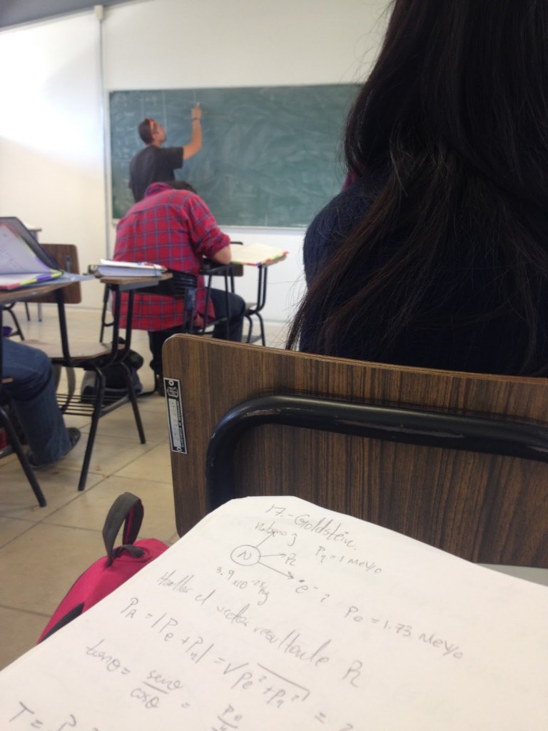 Aquí ando de oyente en la clase del profesor que me recibió durante mi intercambio en León. Como tenía horas libres entre clases, decidí ponerme a aprender un poco de Relatividad Especial para pasar el rato. Curiosamente, parece que en ese momento andaba repasando unos ejercicios de Mecánica Clásica, como se puede ver en la imagen. Esta materia que menciono la tomé con los de la maestría, porque no tocaba abrirla a los de la carrera en ese semestre que iba de visita. La verdad es que éramos solo tres estudiantes y la mayor parte del curso nos tocó aprenderlo por nuestra cuenta. No que no nos hayan dado clases, pero las tareas eran muy pesadas y también los conceptos que nos tocaba aprender. Ahora, 10 años después, me toca impartir este curso a mis queridos alumnos. A ver cómo nos va, porque va a ser todo un show manejar un grupo de casi cincuenta personas (la parte de la física va a estar más fácil que la del management).