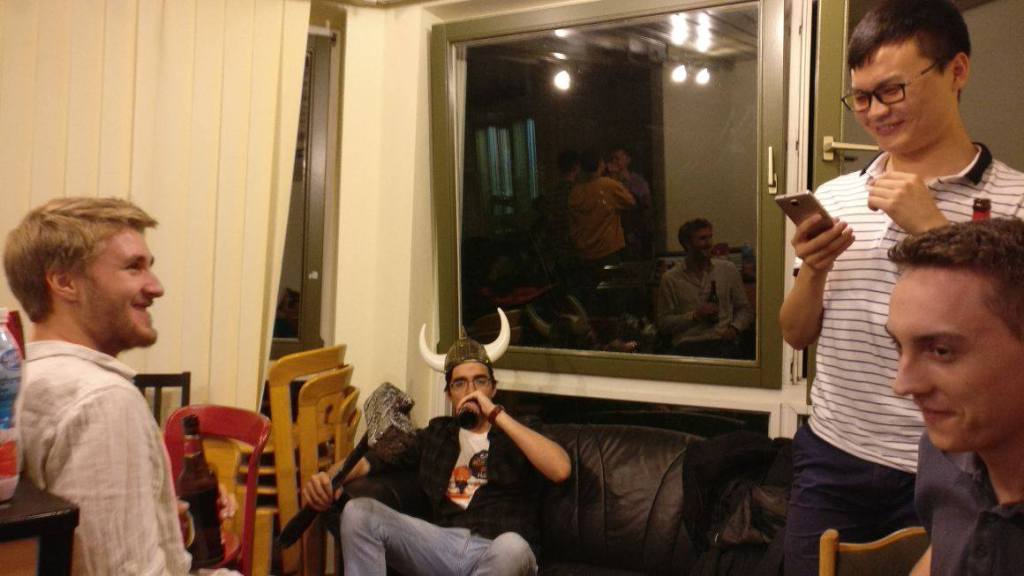 Hace poco tuve la fortuna de reunirme con gran parte del grupo de amigos en Bonn. Claro que esta reunión se celebró en línea, pero no impidió que compartiéramos lindas memorias que vivimos juntos. En este encuentro se compartieron imágenes que nunca tuve la oportunidad de ver; esta es una de ellas (seguro van a reconocer algunos rostros si es que han seguido mis publicaciones alemanas). Fue poco después del segundo semestre de la maestría, poco antes de visitar México por primera vez después de un año. En ese rato le andábamos celebrando a un amigo de la India (por eso me puse esa playera que me trajeron justo de aquel país). Honestamente, no recuerdo de dónde salió el casco y el martillo, pero me dieron ganas de portarlos un rato. Me dio mucha sorpresa y alegría que sacaran esta imagen en la meeting; siempre me emociona redescubrir viejos momentos, de esos que tanto disfruté.