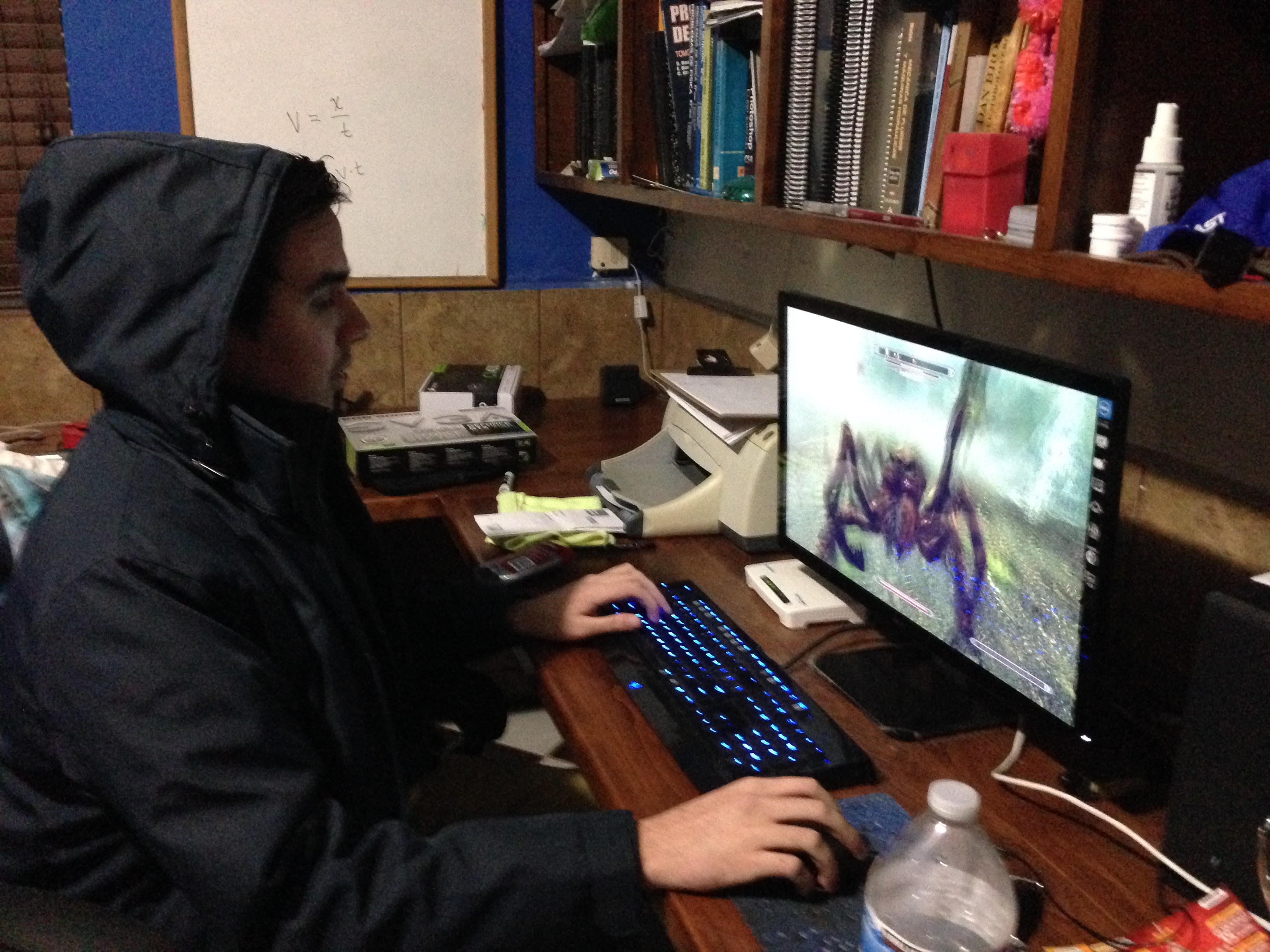 Era una noche de año nuevo, y andábamos emocionados porque habíamos conseguido una nueva tarjeta gráfica para la compu, y que mejor forma de ponerla a prueba que con un poco de Skyrim. No recuerdo muy bien lo que estaba pasando en esos momentos, pero mi hermano decidió tomarme una foto. Supongo que me veía raro por ponerme a jugar con tremenda chamarra, aunque debo decir que sí hacía frío en ese entonces. Sin embargo, esto no era un comportamiento raro en mí. Desde chico me la he pasado jugando videojuegos. Comenzando con el viejo Mario en el SNES, hasta World of Warcraft en línea. De hecho, el nombre de esta página es mi gamertag. No recuerdo bien por qué elegí el nombre de Zekuel, pero ha estado conmigo desde hace como veinte años. Si alguna vez lo vieron en algún juego en línea, seguramente era yo. Tengo ya más de un año queriendo escribir sobre el origen de este apodo, pero no he encontrado el tiempo, y tampoco alguna razón concreta de su origen. Ya veré si en las siguientes semanas se me ocurre algo. Bis nächsts mal.