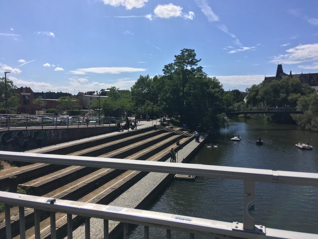 Esta es una imagen que tomé mientras visitaba Marburg, tres años después de haber vivido ahí. La razón de mi visita fue que un colega había llegado a vivir lo que yo había vivido en esa ciudad: curso de idiomas antes del posgrado. En cuanto supe esto, planeé un viaje para quedarme un fin de semana y mostrarle los lugares chidos de la ciudad. Uno de los lugares principales es el de la foto: las escaleras frente a la Mensa. En este lugar, pasé incontables momentos con mis compañeros del curso de idiomas. Imagínense este sitio de noche y lleno de gente, todos cotorreando y pisteando. Es un espacio estratégico, pues se encuentra en el centro de la ciudad y hay un supermercado a menos de cinco minutos caminando donde puedes comprar alcohol. Esto crea un ciclo casi infinito que se rompía poco después de que cerrara la tienda y se acabara el combustible. Poco antes de despedirme de Alemania, regresé para tomarme unas cheves en nombre de lo vivido en este lugar.