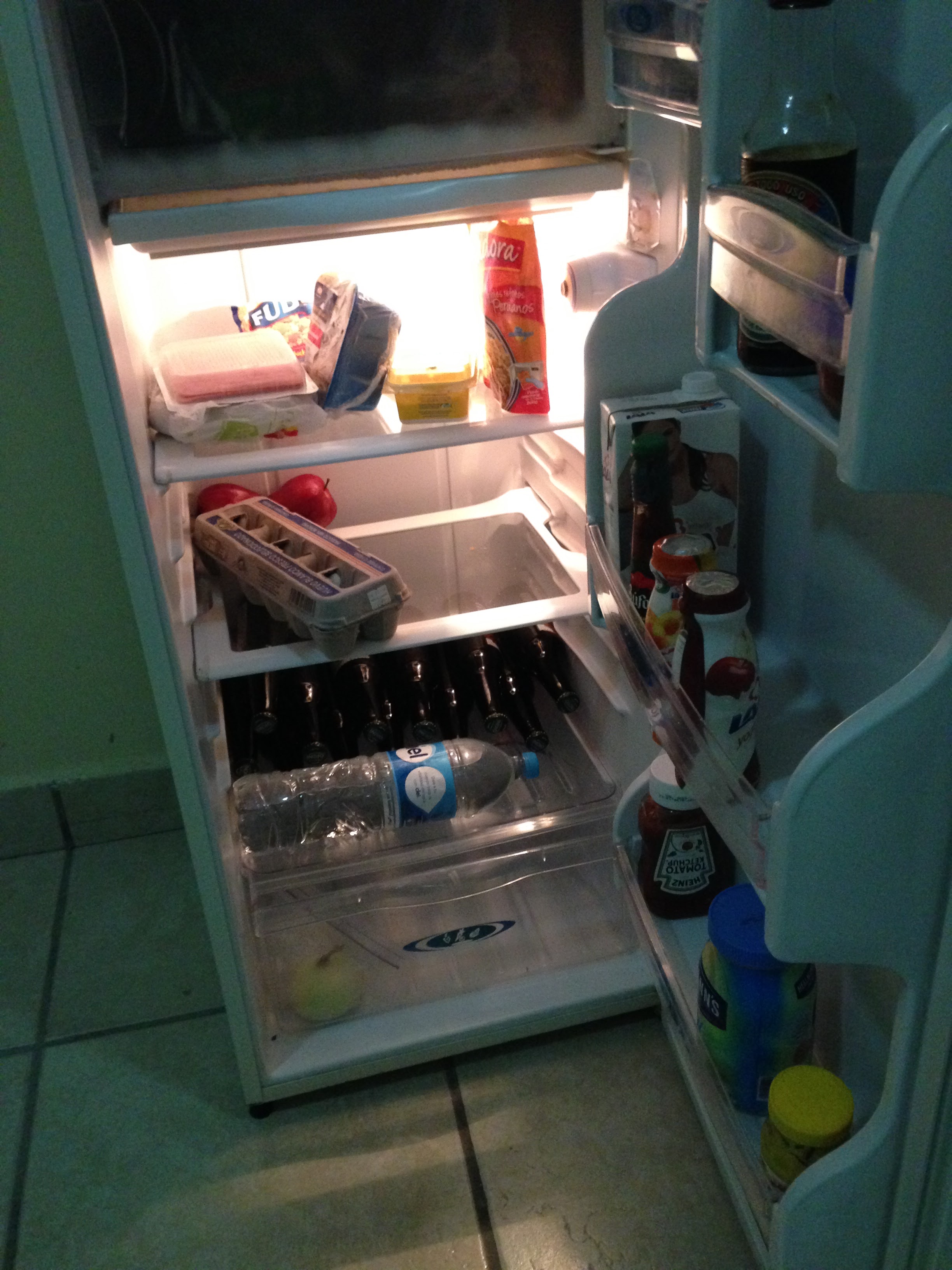 Una vista de mi refri en 2014. Era la primera vez fuera de casa, y me fui algo lejos. Estaba en León estudiando un semestre de intercambio. Resulta que no era, ni soy todavía, muy creativo con lo que me preparo para comer. Eso sí, las cheves nunca pueden faltar aquí. Curiosamente, si abren mi refri actualmente verán una imagen muy similar. Lo único que cambia es la calidad de las chelas; ya no les va a tocar ver cerveza del Oxxo. Honestamente, no recuerdo la razón de tomar estar foto. Supongo que estaba contento después de lograr acomodar todas las botellas en la parte de abajo.