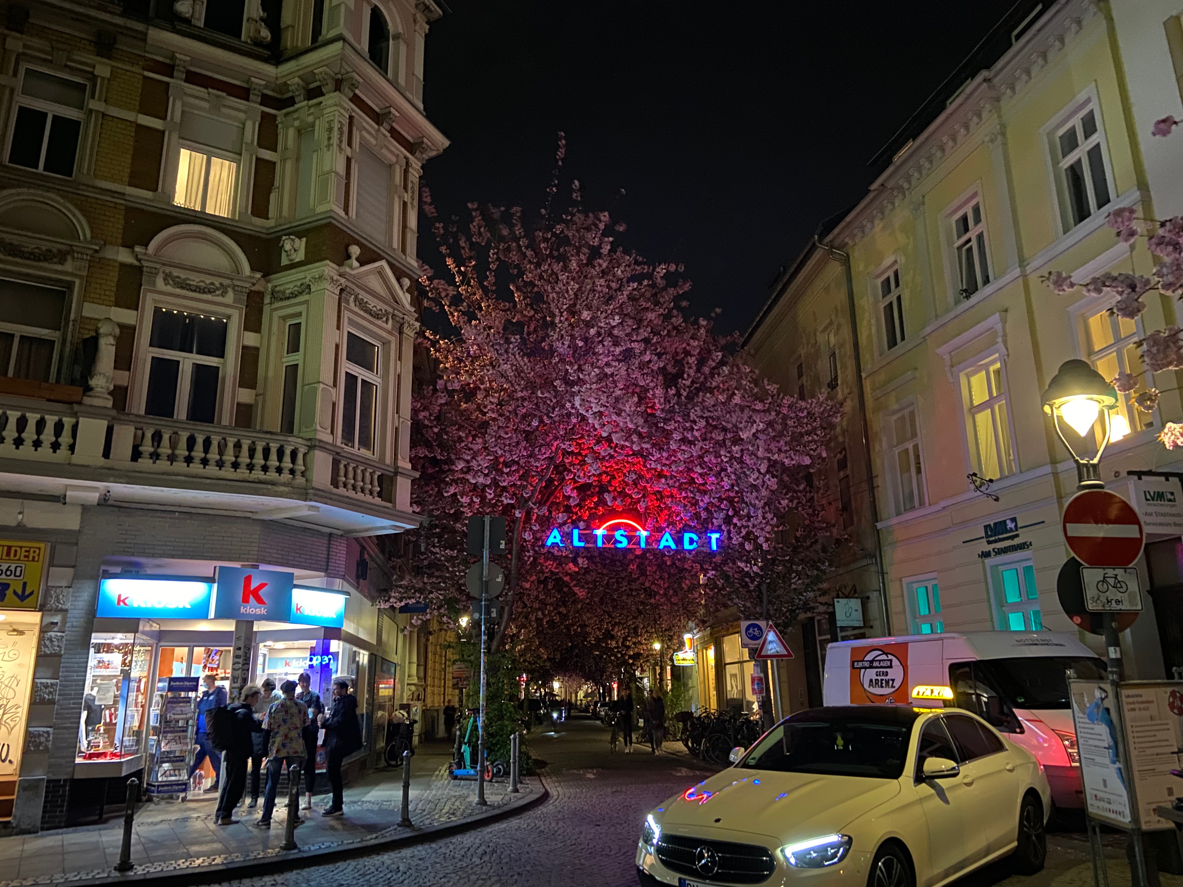 Durante una de las salidas con mis amigos alemanes, me tocó presenciar esta bella imagen. Los famosos árboles con flores rosas andaban a todo, y nos tocó caminar por ahí para poder llegar a los bares. Recuerdo que andábamos de bar en bar, y para cerrar llegamos a uno que justo estaba en esta calle. Si hace zoom van a poder ver que llegan hasta el fondo, pero en realidad se sigue y son varias calles. Es un espectáculo que cada año atrae a miles de personas en varias partes del mundo, como lo que sucede en Japón. Curiosamente en un par de ocasiones me las perdí, por andar de desidioso, a pesar de que me quedaban a unos 10-15 caminando. A ver si me toca volver a verlas, ahora como uno de esos turistas que abarrotan las calles por varios días.