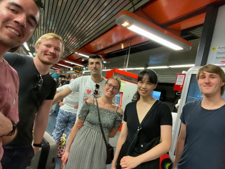 Una última foto con algunos de los amigos que hice en Alemania. Curiosamente, el que está a su izquierda fue el primero que conocí. Recuerdo que fue el primer día que nos llevaron a las oficinas para hacer el papeleo de nuestros respectivos depas. Estábamos en las escaleras haciendo fila y me tocó cotorrear con él. Resultó que nos tocó vivir en el mismo edificio durante los primeros años. Una maestría, doctorado y una pandemia después, ahí seguíamos haciendo desmadre en las fiestas. Me siento afortunado de haber convivido con toda esta bella gente, que me acompañaron, literalmente, hasta el último momento. No fue fácil despedirse, pero ya era el momento. La mayoría de la banda ya se había ido, y no faltaba mucho para que el resto también lo hiciera. En fin, a ver cuándo toca volver a coincidir en alguna parte del mundo con estas lindas personas con las que hice tantas memorias.