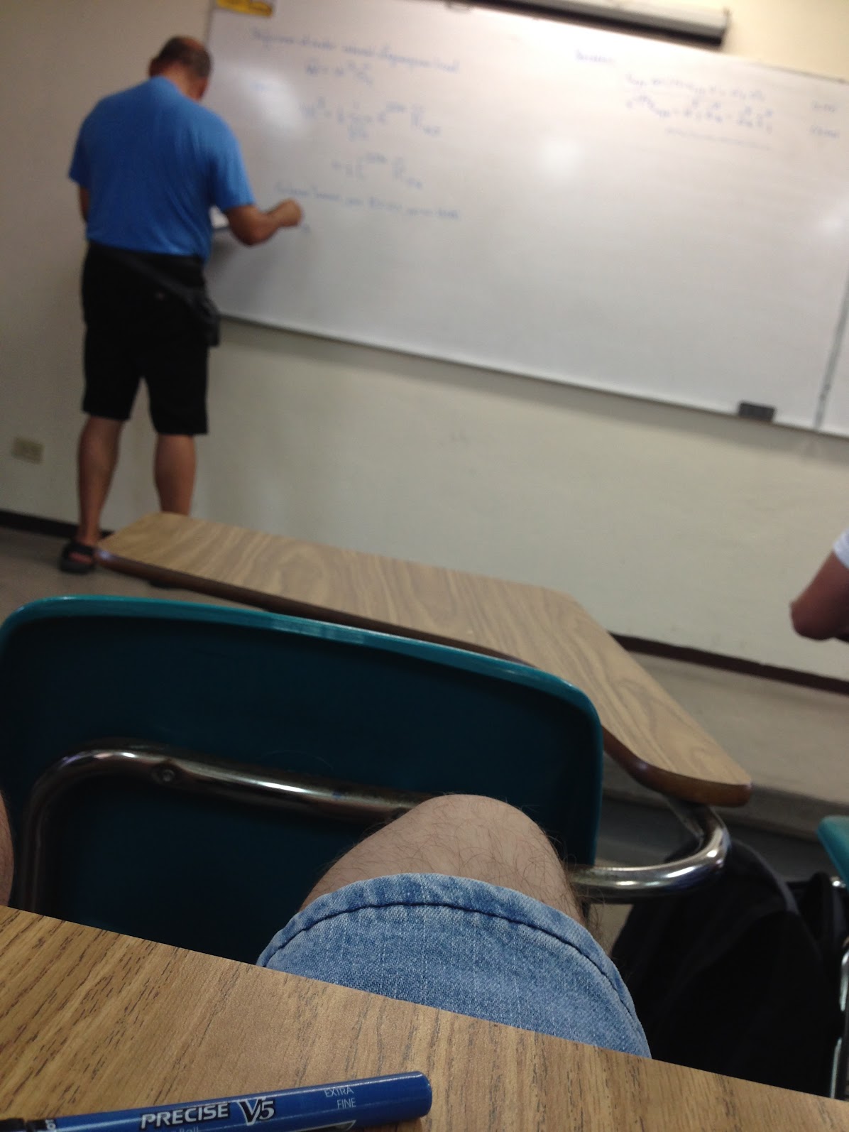 Así se miraba la clase de tensores en la facultad hace poco más de 10 años. Era septiembre por ahí de las seis de la tarde y parece que todavía hacía algo de calor en la ciudad. No recuerdo la razón de haber tomado la foto; el pizarrón ni sale enfocado. El profe que sale en la foto fue uno de los tres que escribió carta de recomendación para que me fuera a Alemania. A veces me lo encuentro por ahí, y todavía se acuerda de mí.