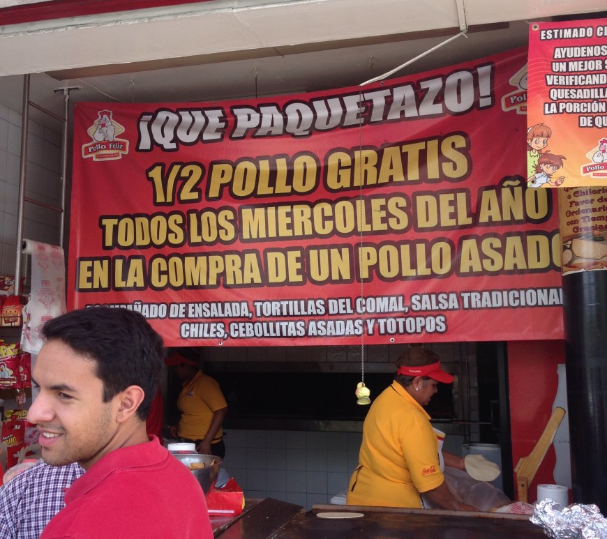 Una linda memoria que me quedó mientras estuve en León para mi intercambio, fue la de ir casi cada miércoles a comer pollo con mis nuevos amiguitos. La mejor parte de esto, aparte del medio pollo que te regalaban, era que te daban una bolsita llena de totopos que te duraba un buen rato; te los podías desayunar como chilaquiles al otro día. Esta tradición … Continue reading Pollo feliz