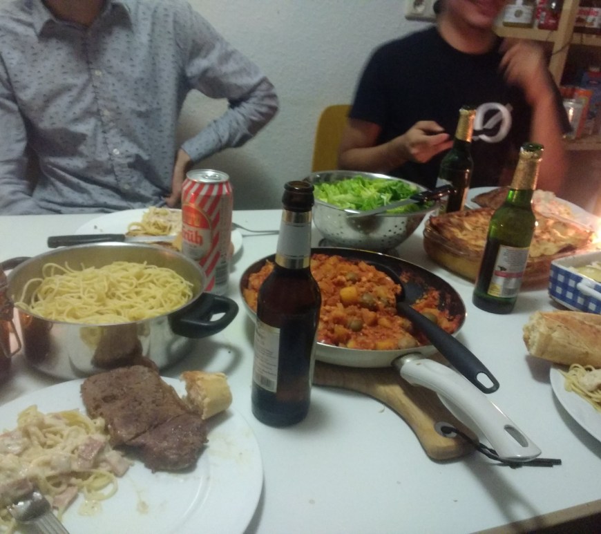 Hace unos años, mientras aún estaba haciendo la maestría, me tocó la fortuna de compartir una deliciosa comida china casera preparada por un colega de China en compañía de los Buben. Como se puede ver en la foto, nos acomodamos en el pequeño cuarto, que tuvimos que reacomodar, para comer lo que nos preparó nuestro amable amigo. Aquí es donde él vivía y compartía el … Continue reading Chinesisches Essen